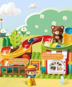 Tư duy không gian: Việc tính toán để lắp ráp các đoạn dốc sao cho bóng lăn được từ trên cao xuống dưới giúp bé hiểu về nguyên lý trọng lực và cấu trúc không gian.