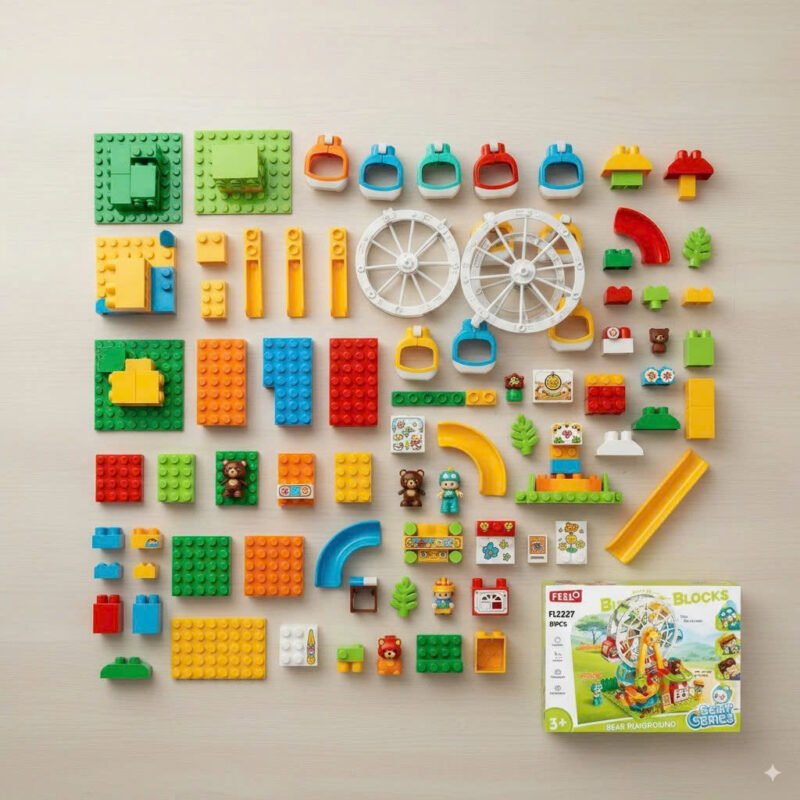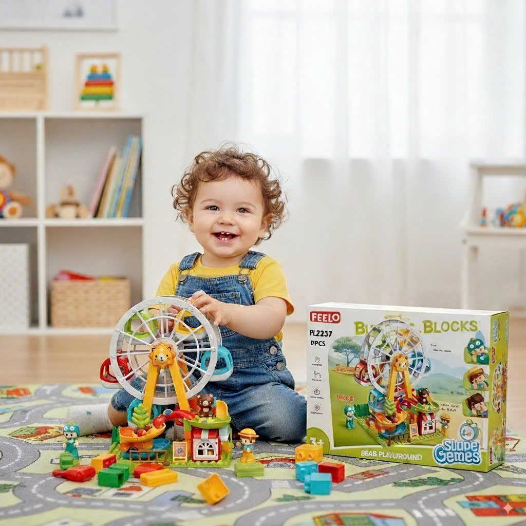 Bộ đồ chơi Con Đường Tư Duy Feelo không chỉ đơn thuần là những khối gạch lắp ghép. Điểm nhấn của bộ sản phẩm là Vòng quay mặt trời khổng lồ có thể xoay được và hệ thống đường trượt uốn lượn. Bé sẽ được tự tay xây dựng nên một công viên giải trí thu nhỏ, nơi các viên bi và nhân vật có thể di chuyển vượt qua các chướng ngại vật.