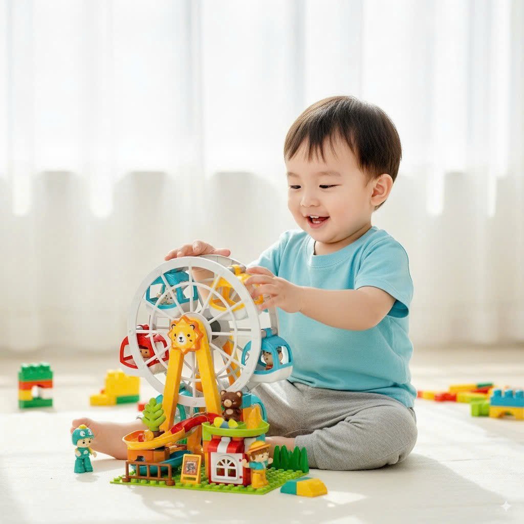 Kỹ năng vận động tinh: Các khối gạch lớn (tương thích với Lego Duplo) giúp đôi tay nhỏ nhắn của bé linh hoạt hơn khi cầm nắm và lắp ghép.